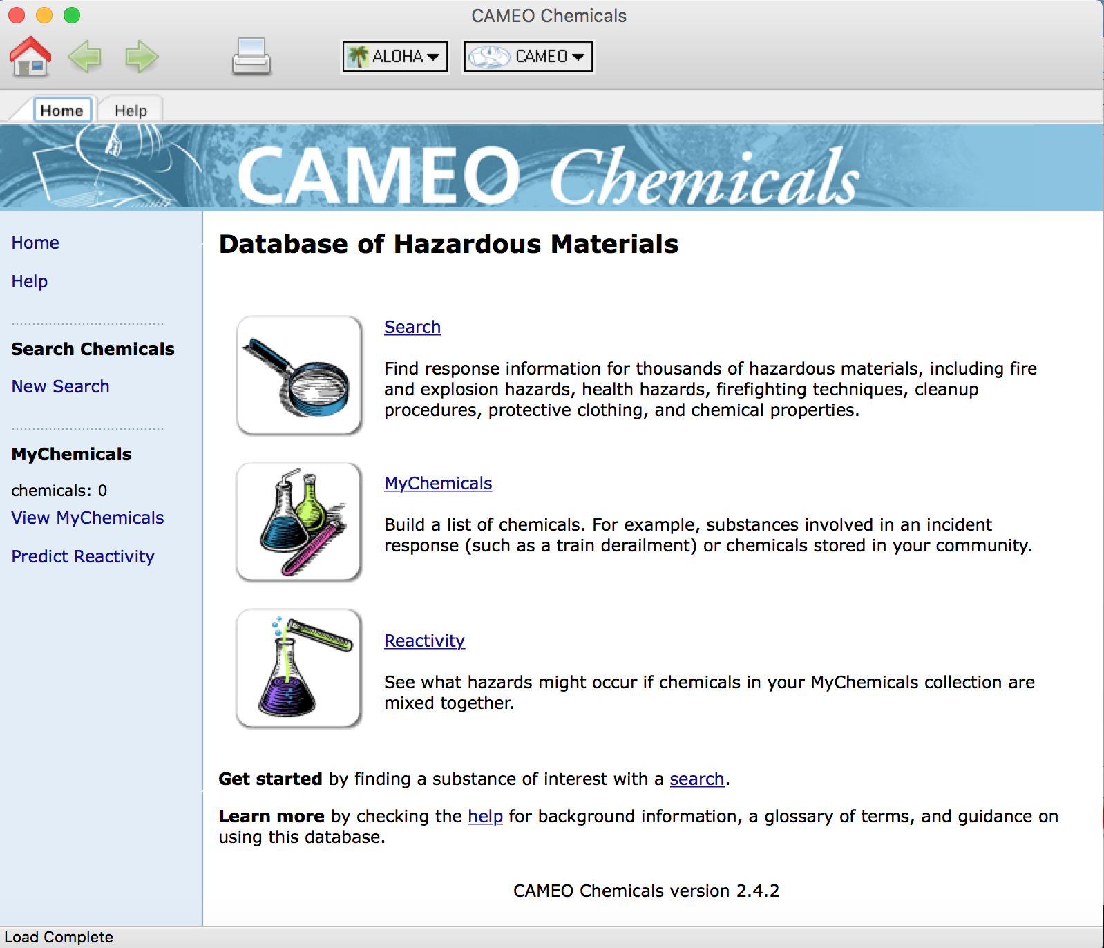 Αρχική σελίδα της βάσης δεδομένων CAMEO Chemicals